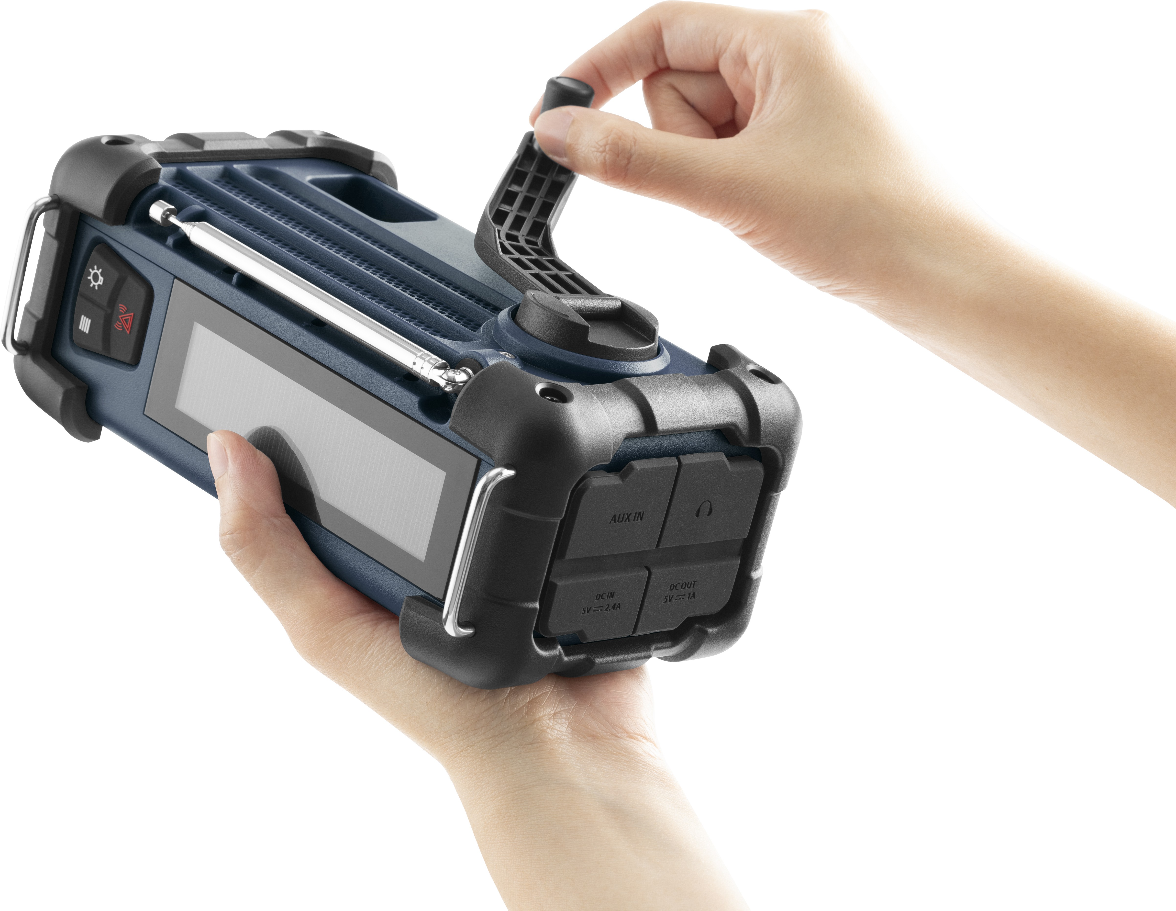 This must-have hand-held radio can be charged by hand cranking, DC-In power by USB Type-C or even the solar panel! MMR-99 DAB not only works as a portable battery to charge other smaller devices, it is also a flashlight with different lighting modes for all situations or emergency situations. With IPX55 rating against dust and water, you can count on it wherever you go, MMR-99 DAB got your back!