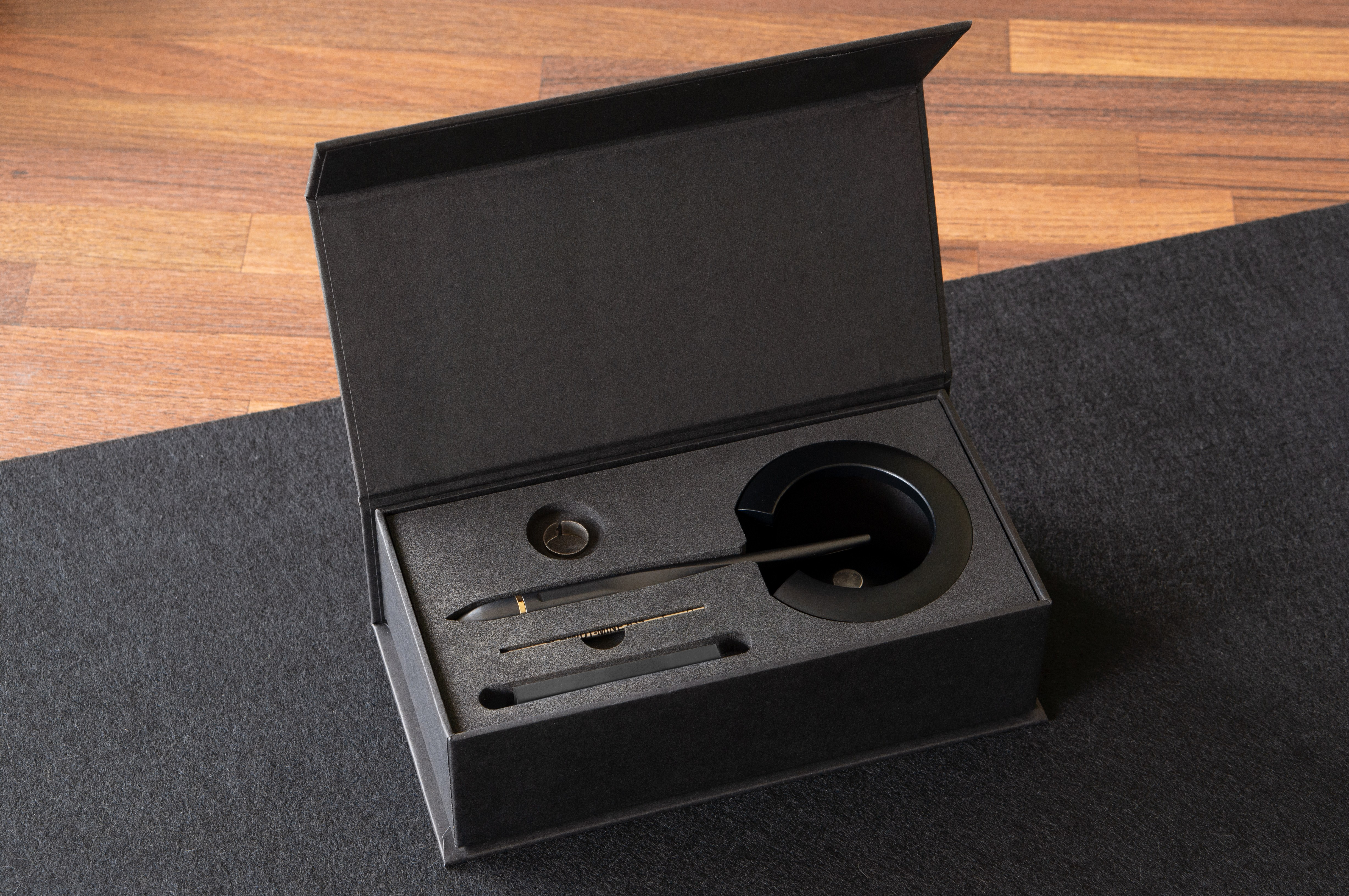 Novium makes full use of magnetism: for this reason, the cap of the Hoverpen 2.0 locks on magnetically. By holding the pen at a small distance from the lid, the cap is drawn onto the pen.